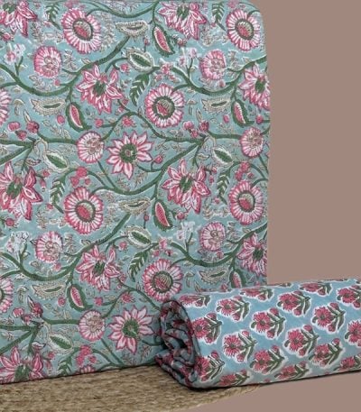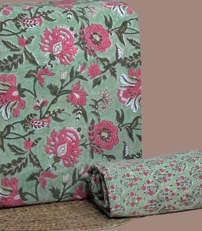 2pc Pure Soft Cotton Blockprinted Top and Bottom Fabric Set