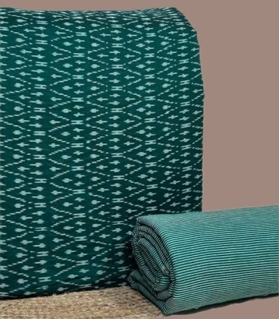 Green – 2pc HandCrafted Ikkat Top and Handloom Woven Stripes Bottom Fabric Set