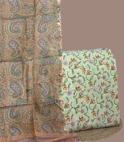 2pc Mangalgiri Zari Border Top and Mangalgiri Cotton Bottom Fabric Set