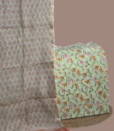 2pc Kota Doria Dupatta and Pure Soft Cotton Blockprint Top Fabric Set
