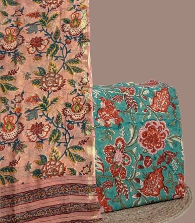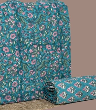 2pc Pure Soft Cotton Blockprinted Top and Bottom Fabric Set