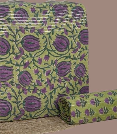 Pre-Cut 1.40m Green Natural Dye Soft Handblock Kalamkaari Printed Cotton Fabric
