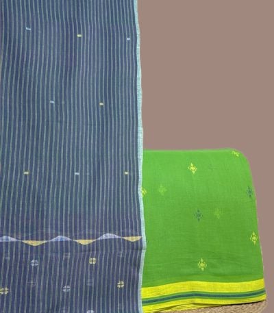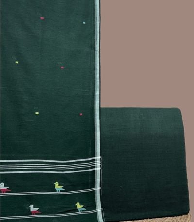 Green – 2pc Handloom Cotton Dupatta and Handloom Soft Cotton Top Fabric Set