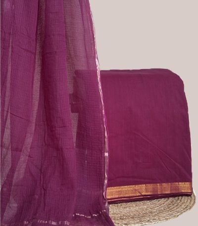Maroon – 2pc Kota Doria Dupatta and Mangalgiri Zari Border Handwoven Pure Cotton Set