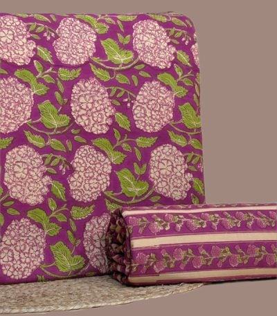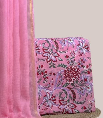 Pink – 2pc Pure Soft Cotton Blockprinted Top and Bottom Fabric Set