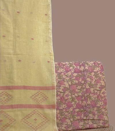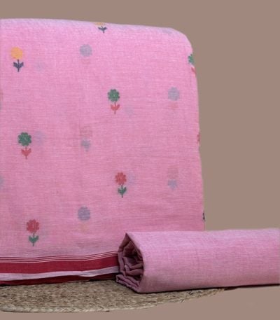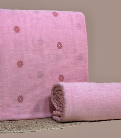 Pink – 2pc Handloom Woven Design Cotton Top and Handloom Soft Cotton Bottom Fabric Set