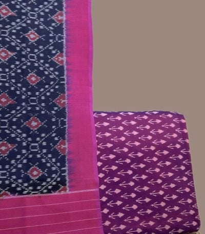 Pink – 2pc Ikkat Cotton Dupatta and Handloom Soft Ikkat Cotton Top Fabric Set