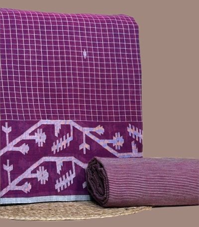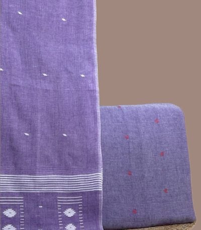 Purple – 2pc Jamdani Intricate Woven Cotton Top and Handloom Stripes Bottom Fabric Set