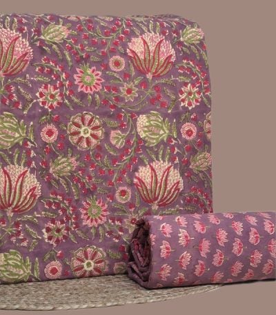 Purple – 2pc Pure Soft Cotton Blockprinted Top and Bottom Fabric Set