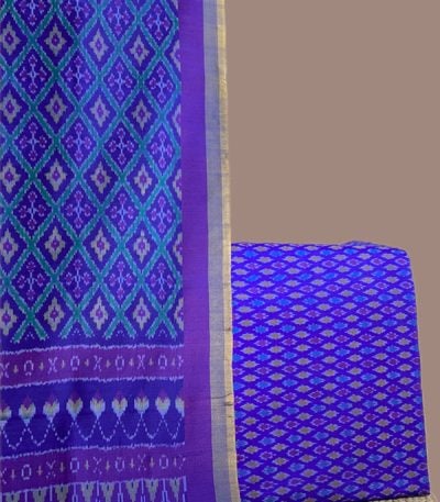 Purple – 2pc Premium Silk-Cotton Ikkat Dupatta and Soft Ikkat Cotton Silk Top Fabric Set