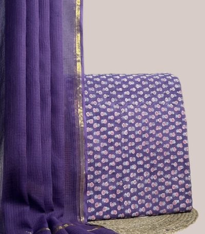 Purple – 2pc Kota Doria Dupatta and Pure Soft Cotton Blockprint Top Fabric Set