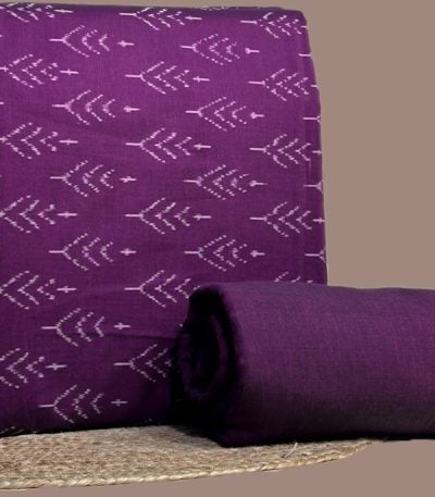 Purple – 2pc HandCrafted Ikkat Top and Handloom Soft Cotton Bottom Fabric Set