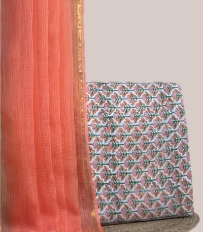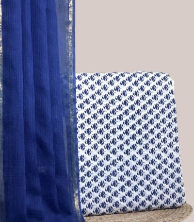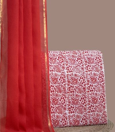 White – 2pc Kota Doria Dupatta and Pure Soft Cotton Blockprint Top Fabric Set