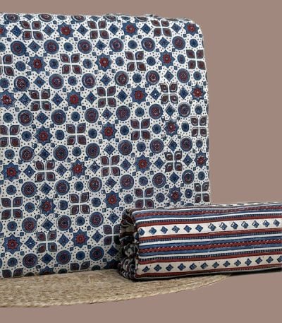 White – 2pc Ajrakh HandCrafted Cotton Top and Bottom Cotton Fabric Set