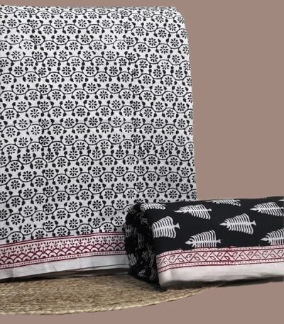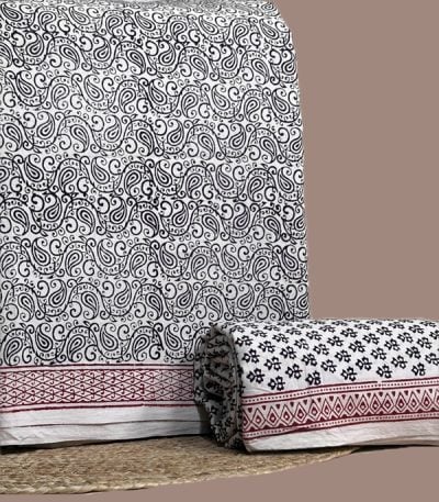 White Floral Handblock Printed 100% Pure Soft Cotton Fabric
