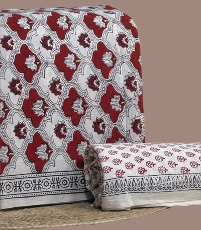 White – 2pc Handloom Cotton Dupatta and Blockprinted Soft Cotton Top Set
