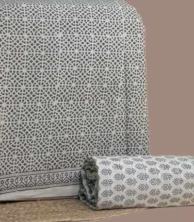 Pre-Cut 1.35m Natural White Handblock Bagh Printed Soft Cotton Fabric