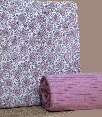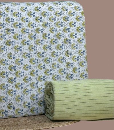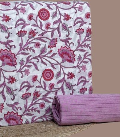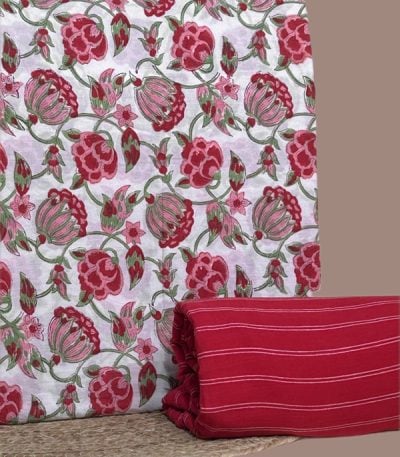 White – 2pc Bagh Handblock Top and Handloom Bottom Cotton Fabric Set