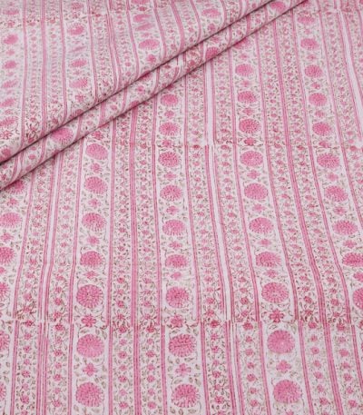 White Floral Handblock Printed 100% Pure Soft Cotton Fabric