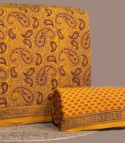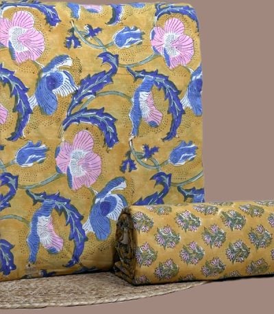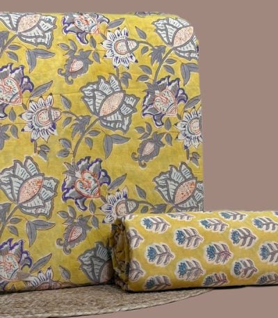 Yellow – 2pc Pure Soft Cotton Blockprinted Top and Bottom Fabric Set