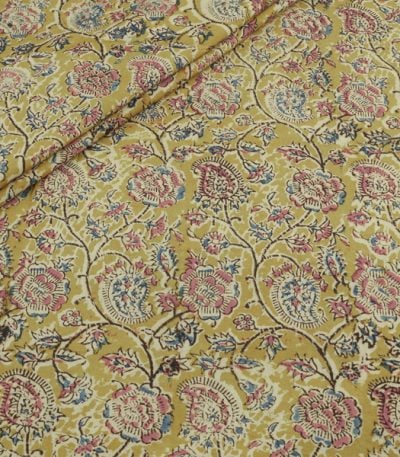 Natural Mustard Yellow Handblock Kalamkaari Printed Cotton Fabric