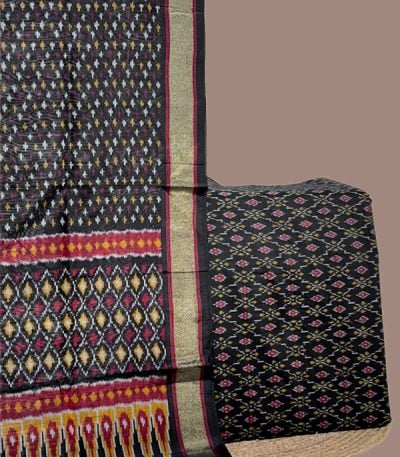 Black – 2pc Premium Silk-Cotton Ikkat Dupatta and Soft Ikkat Cotton Silk Top Fabric Set