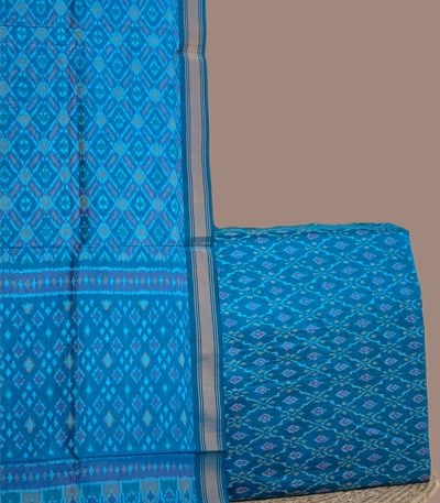 Blue – 2pc Premium Silk-Cotton Ikkat Dupatta and Soft Ikkat Cotton Silk Top Fabric Set