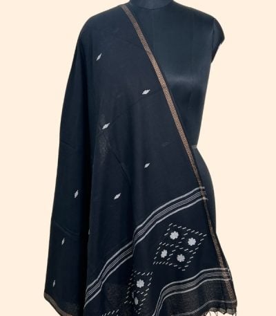 Black – Authentic Handloom Woven Pure Soft Cotton Dupatta