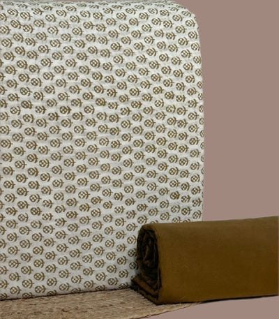 2.5mtr Each – Bagh HandBlock Printed Top and Plain Dyed Cotton Bottom Fabric Set