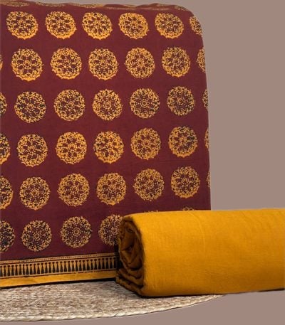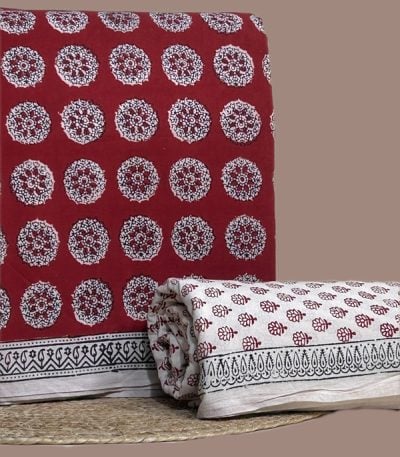 Maroon – 2pc Bagh Handblock Top and Plain Dyed Bottom Cotton Fabric Set