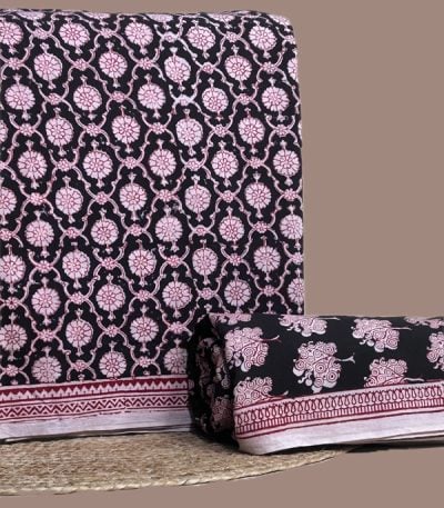 Black – 2pc Bagh HandCrafted Top and Bottom Cotton Fabric Set