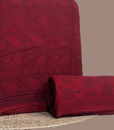Red – 2pc Bagh HandCrafted Blockprint Top and Bottom Cotton Fabric Set