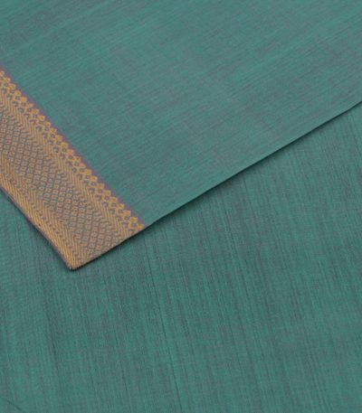 Tropical Teal Handwoven Zari Border Pure Cotton Fabric
