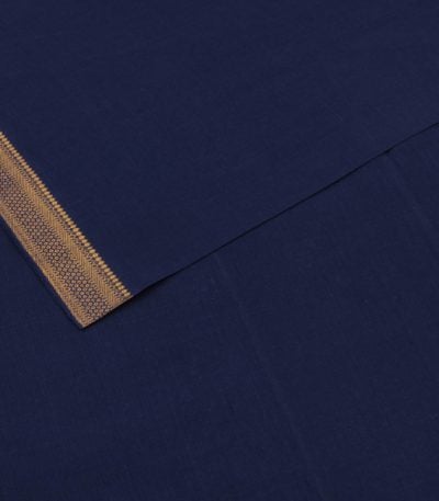 Oxford Navy Blue Handwoven Zari Border Pure Cotton Fabric