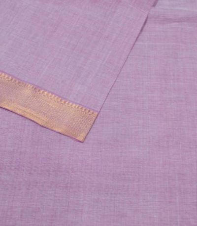 Purple Handwoven Zari Border Pure Cotton Fabric