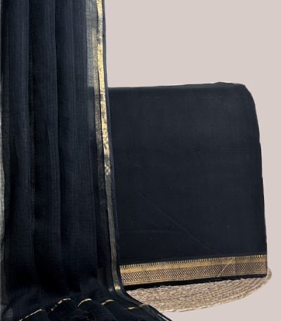 Black – 2pc Handloom Soft Dupatta and Mangalgiri Zari Border Handwoven Pure Cotton Set