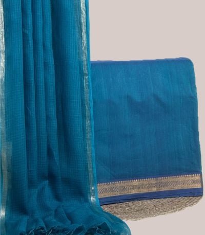 Blue – 2pc Kota Doria Dupatta and Mangalgiri Zari Border Handwoven Pure Cotton Set