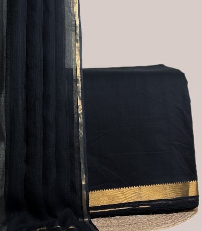 Black – 2pc Kota Doria Dupatta and Mangalgiri Zari Border Handwoven Pure Cotton Set
