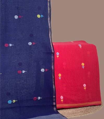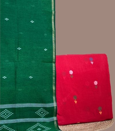 Red – 2pc Handloom Cotton Dupatta and Handloom Woven Design Top Fabric Set