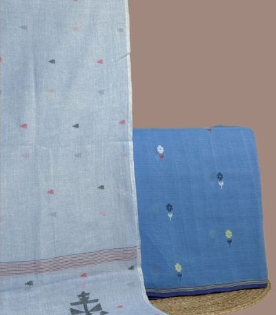 Blue – 2pc Handloom Cotton Dupatta and Handloom Woven Design Top Fabric Set