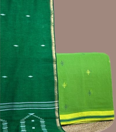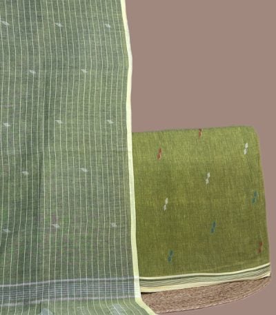 Green – 2pc Handloom Cotton Dupatta and Handloom Woven Design Top Fabric Set