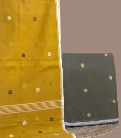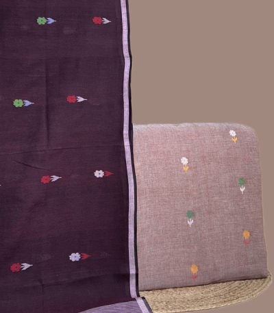 Brown – 2pc Handloom Cotton Dupatta and Handloom Woven Design Top Fabric Set