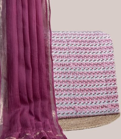 Pink – 2pc Kota Doria Dupatta and Pure Soft Cotton Blockprint Top Fabric Set