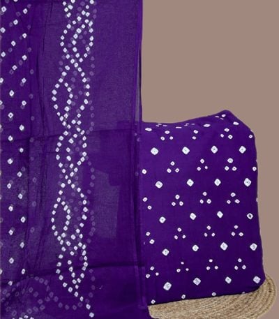 2pc Bandhani Cotton Dupatta with Cotton Bandhani Top Fabric Set