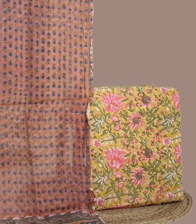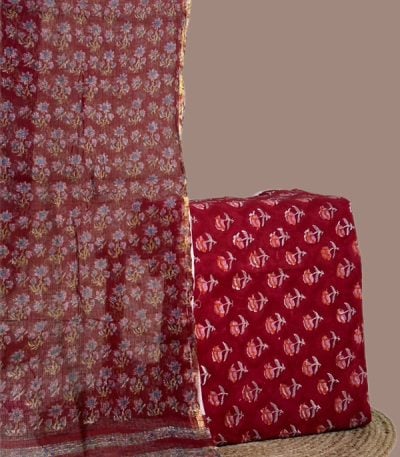 2pc Kota Doria Dupatta and Pure Soft Cotton Blockprint Top Fabric Set