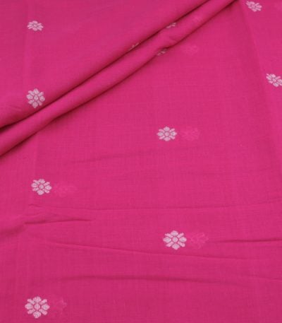 Bright Pink Woven Design Flowy HandLoom Pure Soft Cotton Fabric