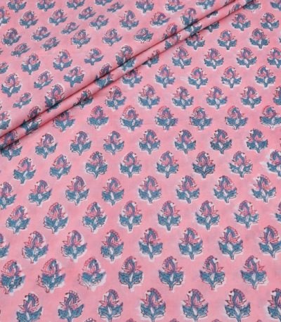 Cherry Blossom Pink Floral Handblock Printed 100% Pure Soft Cotton Fabric