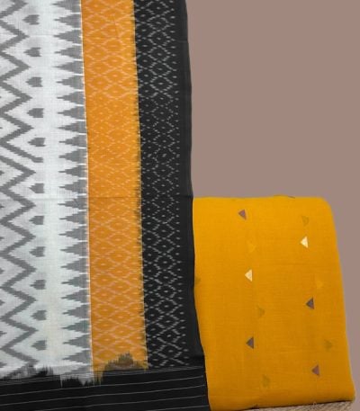 Yellow – 2pc Ikkat Cotton Dupatta and Handloom Woven Motif Cotton Top Fabric Set