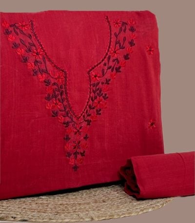 2Pc Handloom Embroidered Neck Design Soft Cotton Top(3m) Bottom(2.5m) Fabric Set