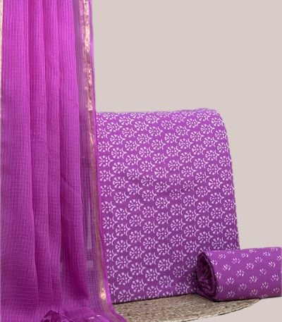Purple – 2pc Kota Doria Dupatta and Pure Soft Cotton Blockprint Top Fabric Set